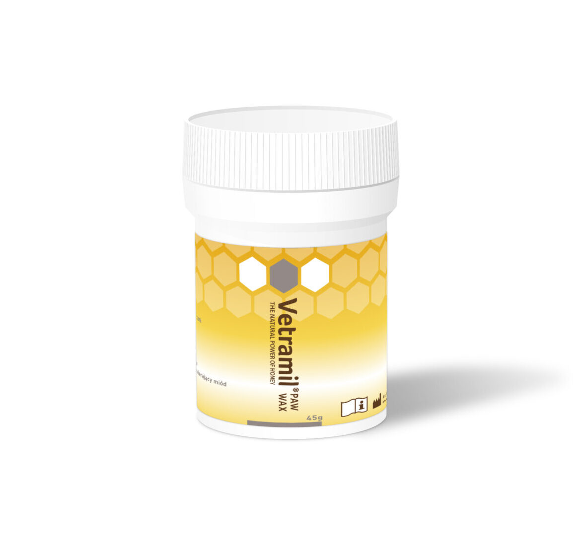 (like hot asphalt), ice, salt, snow and rough surfaces. These conditions can lead to an impaired skin and chapped pads. Vetramil® Paw Wax is composed of natural substances that protect the foot pads against the effects of extreme conditions. Beeswax forms a water-repellent protective layer and is well-tolerated by the skin of the foot pads. The enzymes and antioxidants present in the honey contribute to an optimal condition of the foot pads by their soothing and calming properties. The moisturizing properties of almond oil help to keep the skin of the foot pads well-hydrated.